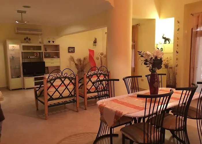 The villa is set in the Domina Coral Bay district, just a 6-minute walk from Aladin Casino and approximately 10 minutes by car from Gardens. At the accommodation, you will find a terrace and a garden.