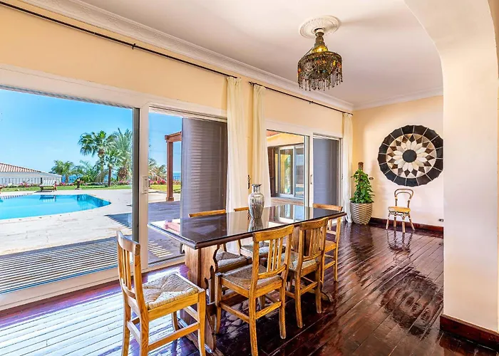 Situated in the El Hadaba district, the self-catering villa features a private pool and proximity to an own beach area. It has views of the Red Sea and is 4 km away from the centre of Sharm el-Sheikh. The 6-room Carlton Luxury Villa offers a beachfront accommodation in Sharm el-Sheikh, nearly a 5-minute drive from Mirage Divers. Sharm el-Sheikh International airport is set 25 km from this beachfront property.